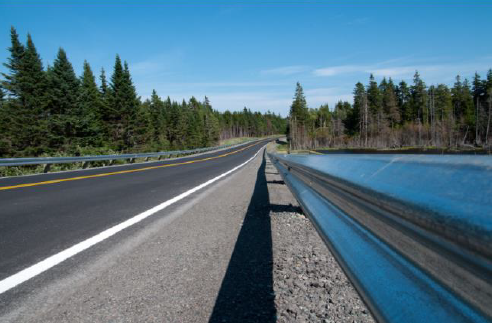 Barrera metálica simple para borde lateral. Sistema compuesto por una barrera de triple onda y postes C distanciados 1,905 metros entre sí.