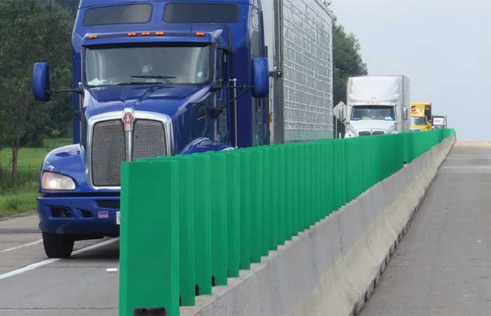 Glarscreen es un sistema de paleta/hoja vertical abatible después de un impacto y se reposiciona sin sufrir daños, que se utiliza para bloquear el deslumbramiento de los faros del tráfico que seaproxima. Ubicado en la parte superior de las barreras centrales. Las paletas/hojas están hechas de materiales poliméricos flexibles y duraderos y pueden volver a laposición vertical después de la mayoría de los impactos de alta velocidad.