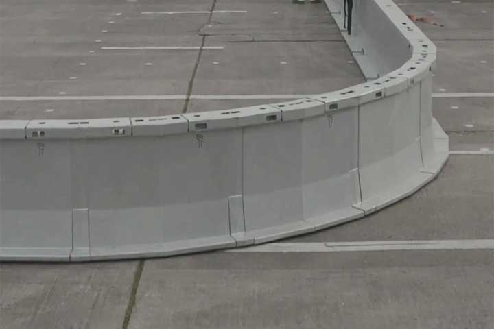La barrera HighwayGuard™ es una barrera de acero de redireccionamiento longitudinal portátil hecha de segmentos de acero galvanizado livianos.